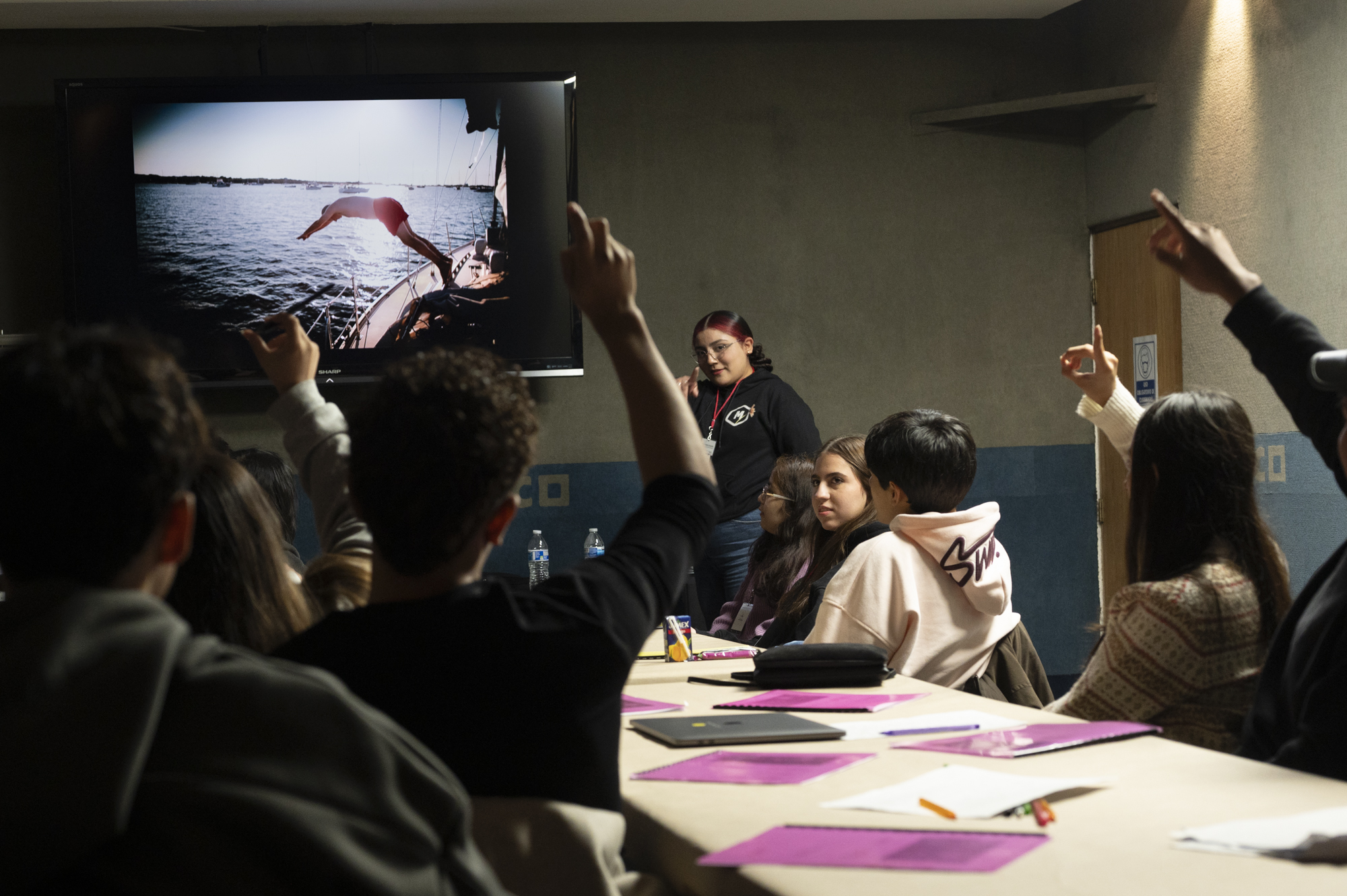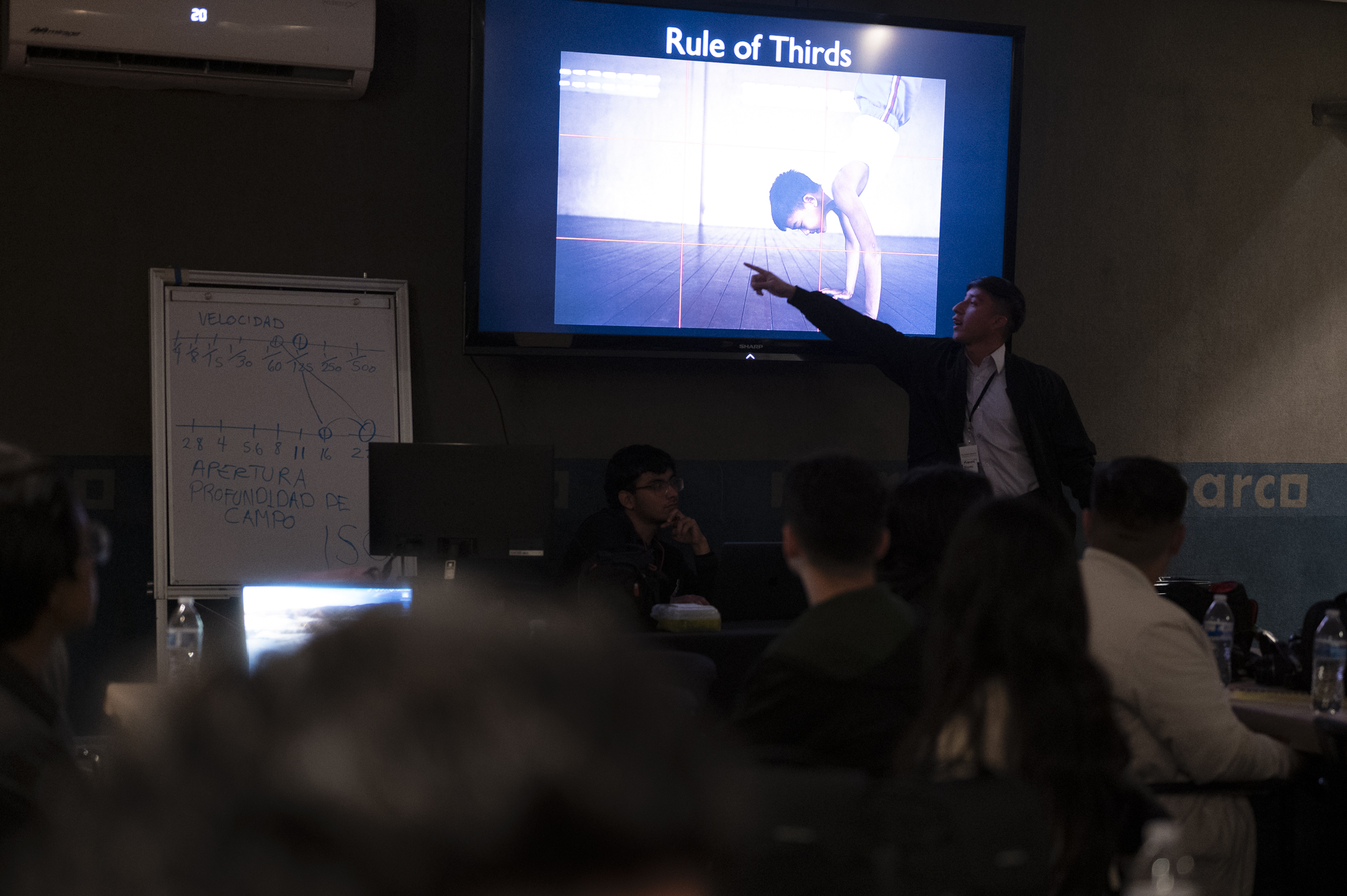 Aurora quizzing the students on the effects of shutter speed on capturing motion or allowing motion blur.