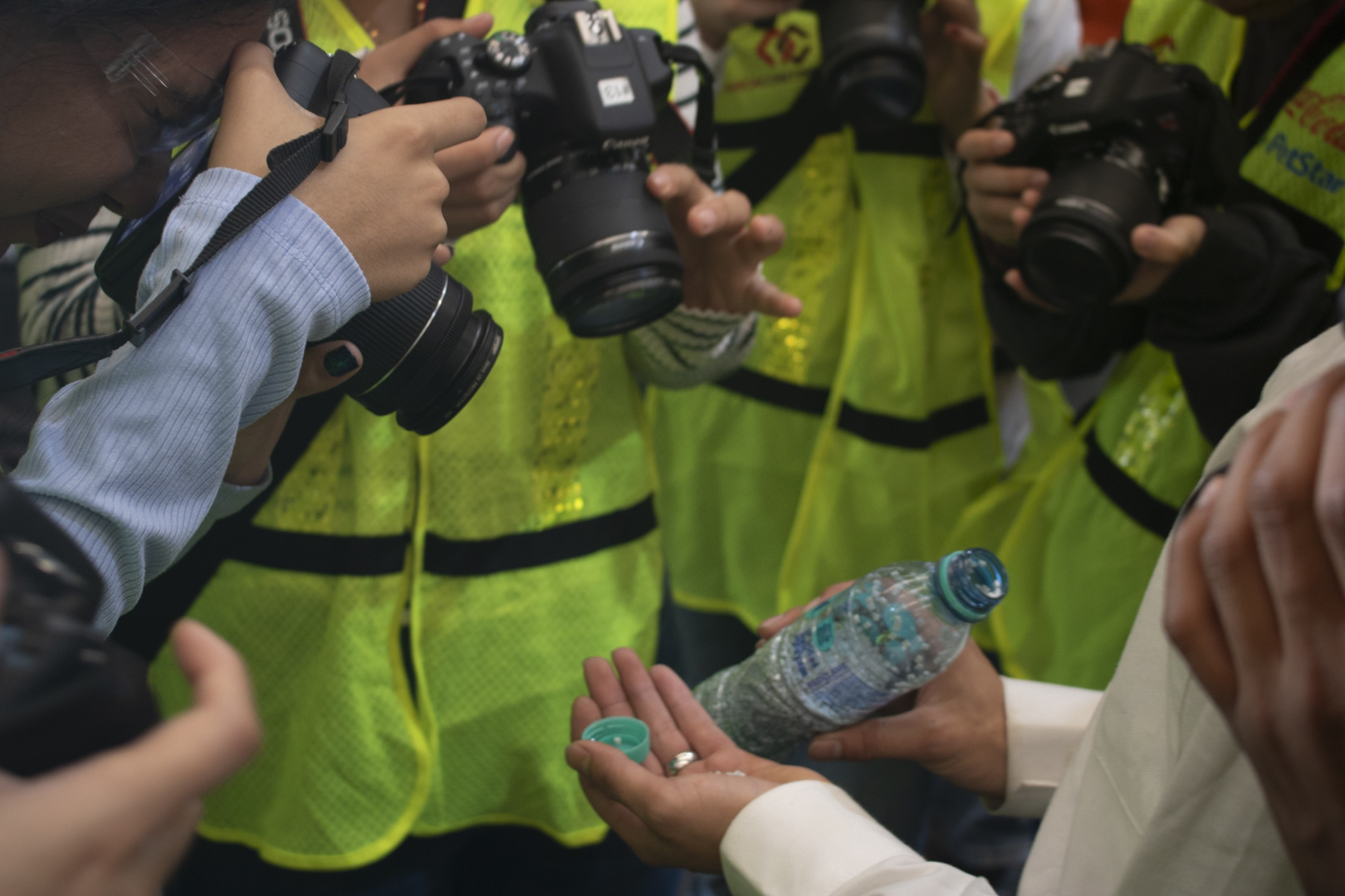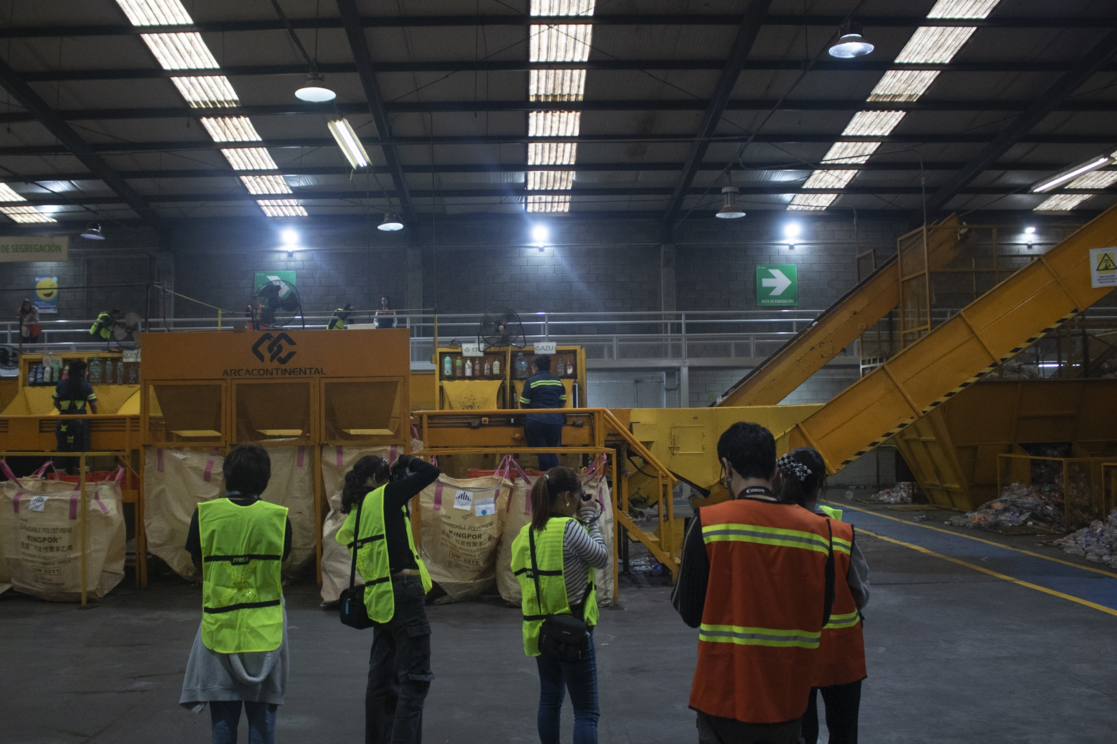El trayecto, aunque largo, fue cómodo. Los alumnos estuvieron practicando con sus cámaras, intentando acostumbrarse un poco más a cada uno de los botones y configuraciones que veían en ellas. La llegada al centro de recolección fue tranquila, los trabajadores muy amables nos recibieron con los brazos abiertos, felices de vernos llegar a sus instalaciones y dispuestos a aclarar cualquiera de nuestras dudas. Al principio vimos un par de videos para entender más el trasfondo de la institución e informarnos sobre lo que estábamos a punto de ver… Prensas gigantes, camiones llegando cargados de botellas pet listas para ser separadas, prensadas, y acomodadas, y una retroexcavadora que arduamente juntaba y acomodaba las mismas botellas pet que iban llegando al centro nos dieron la bienvenida, al igual que una serie de trabajadores quienes se encargan de los procesos más elementales al momento de recolectar, separar, prensar, y ordenar las miles de toneladas que han pasado por esas máquinas y por esas manos. Los chicos se veían intrigados, sorprendidos, y emocionados. No se quitaban la cámara de la cara, queriendo capturar cada detalle que les interesara; tomas a detalle de las máquinas, fotos del personal haciendo su trabajo, imágenes donde se reflejaba el movimiento y la sensación que se sentía en el interior del lugar. Fue una excursión perfecta.