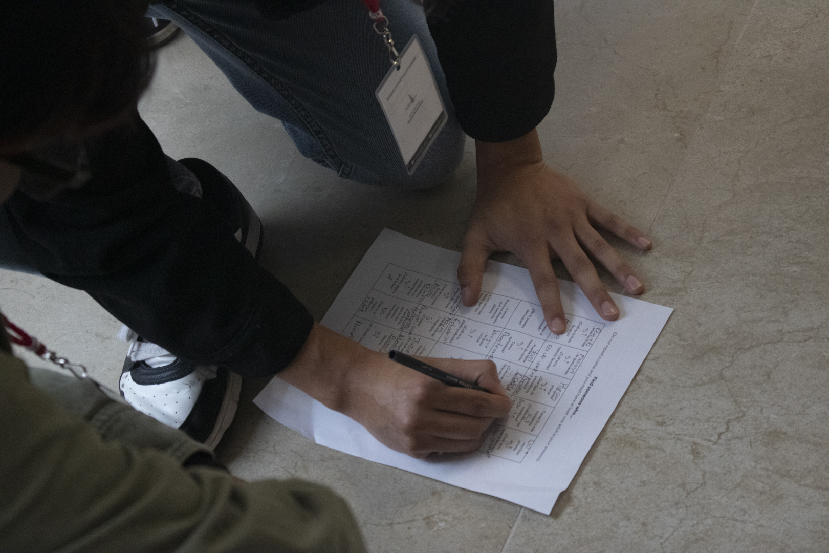 Para empezar con la inspiración a tope, vimos todos juntos el slideshow de Fred Roberts. Observar el trabajo de un fotógrafo profesional de su nivel les abrió los ojos a las posibilidades que ofrece la cámara. Después de esta introducción, y para romper un poco el hielo, organizamos una dinámica de “Bingo” que resultó ser un éxito total; entre risas y bromas, los chicos empezaron a soltarse y a conectar entre ellos.
